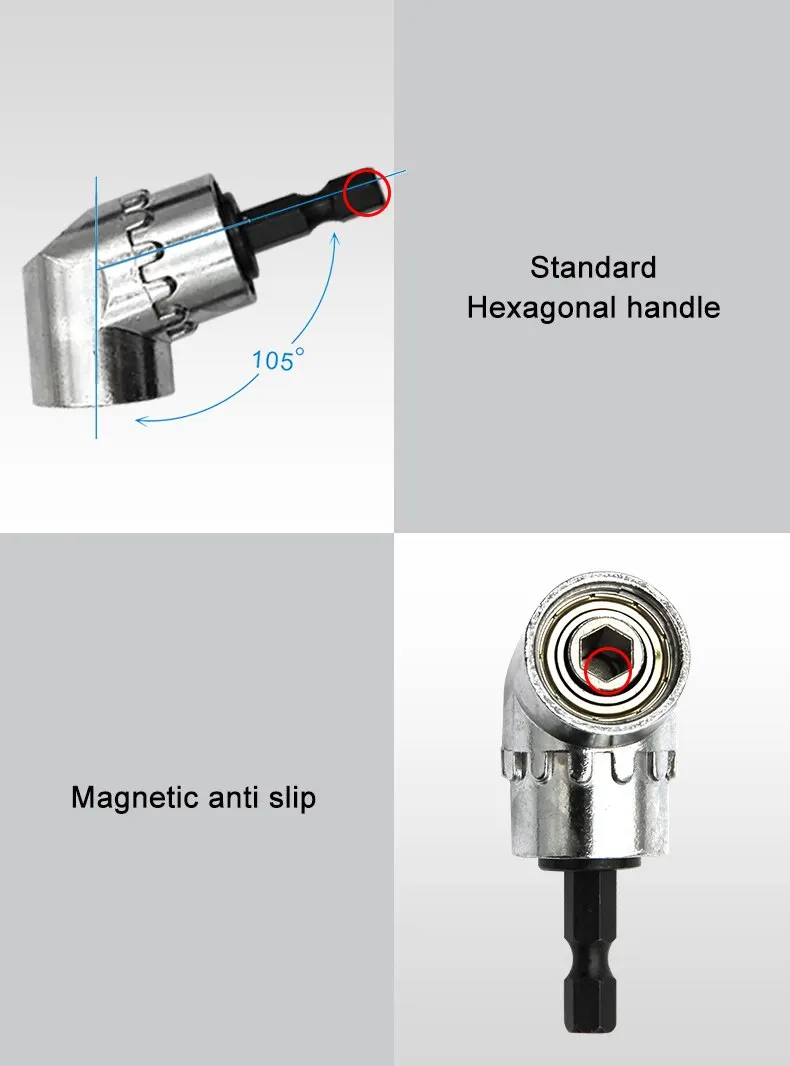 • 105 degree turning screwdriver joint :The 105-degree turning screwdriver joint allows for easy and efficient installation of screws at an angle, making it perfect for woodworking and DIY projects.