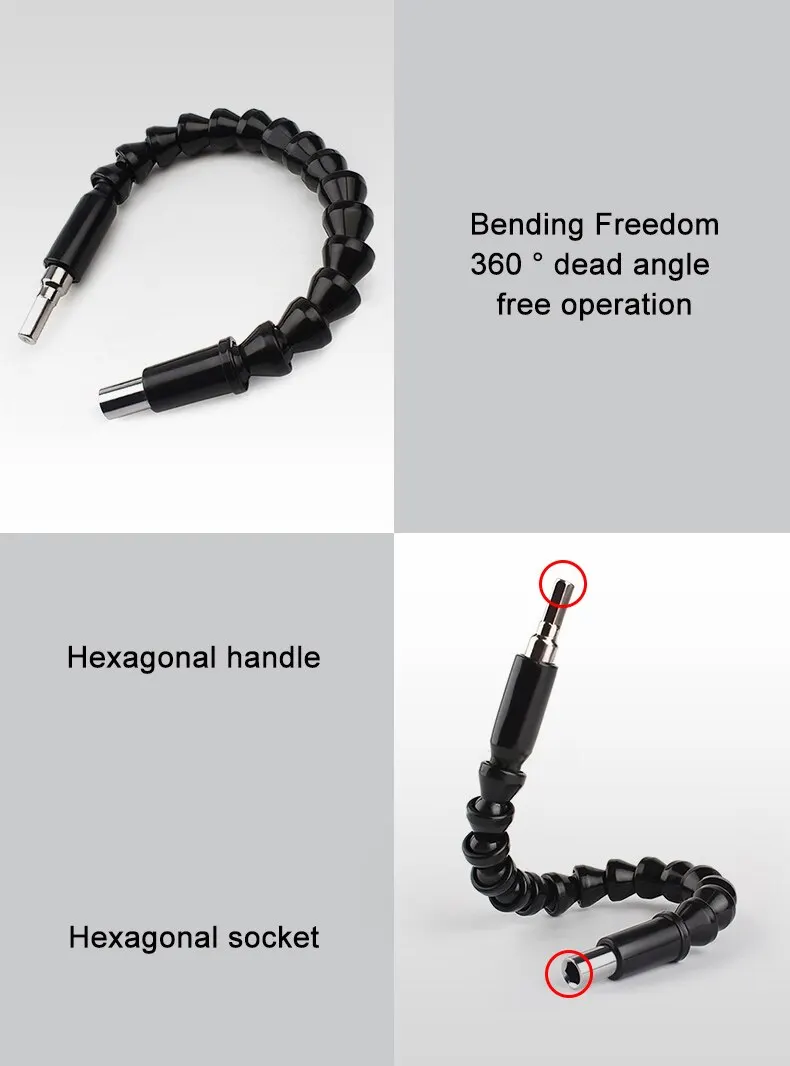 Function: It can be connected to electric drills, rechargeable electric drills, or manual wrenches, extending to narrow spaces that they cannot reach, twisting screws, nuts, etc.