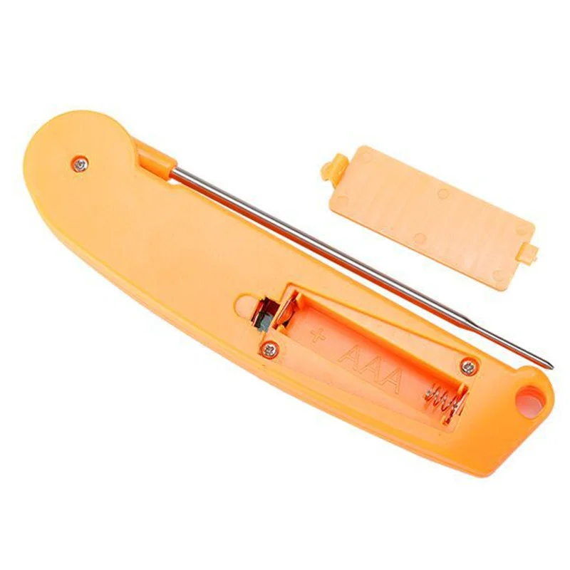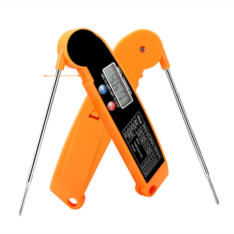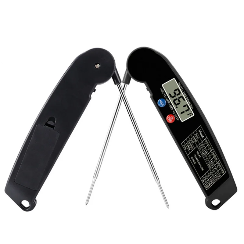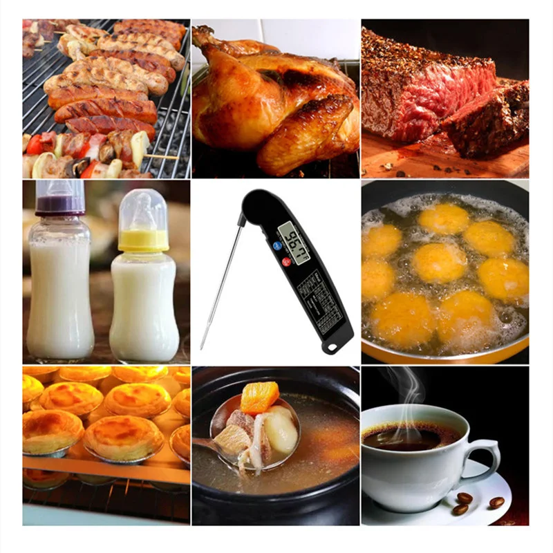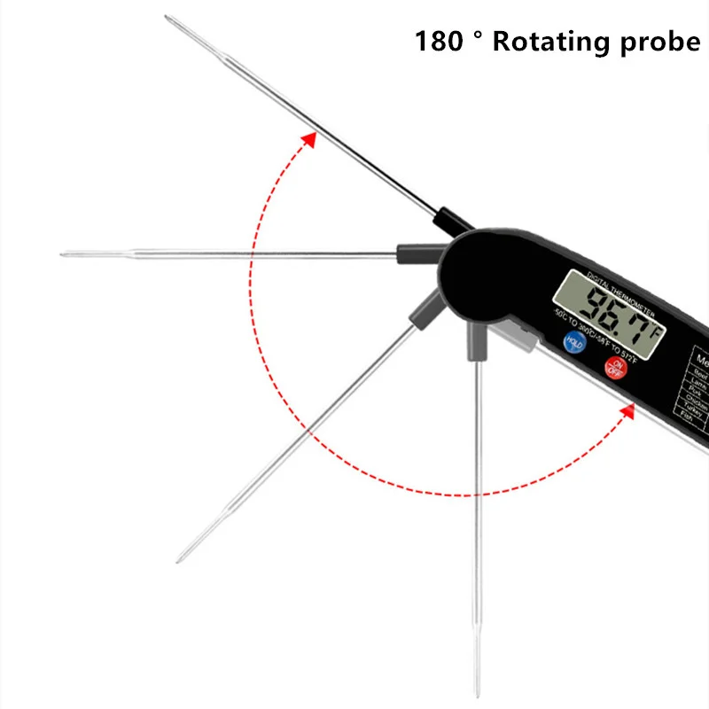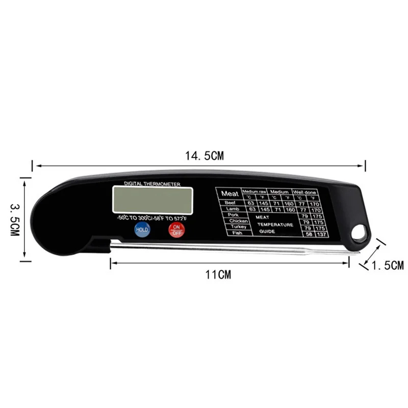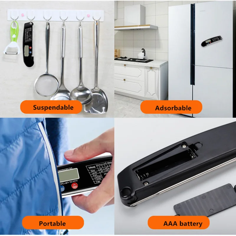 CONVENIENT & EASE TO USE. Kitchen Thermometer with foldable probe design folds away easily and locks into base for portability; Magnetic back and hook allows for convenient storage & auto shut off after 10 min, Thermometer case is made of strong ABS plastic