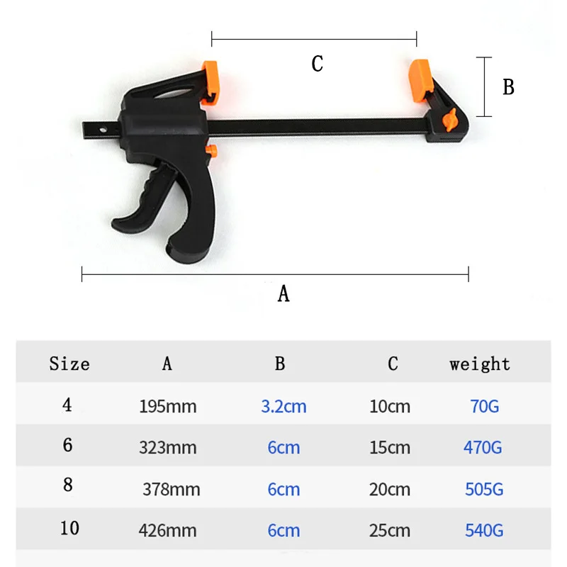 Package Included: 4/6/8/10inch F Clip Woodworking